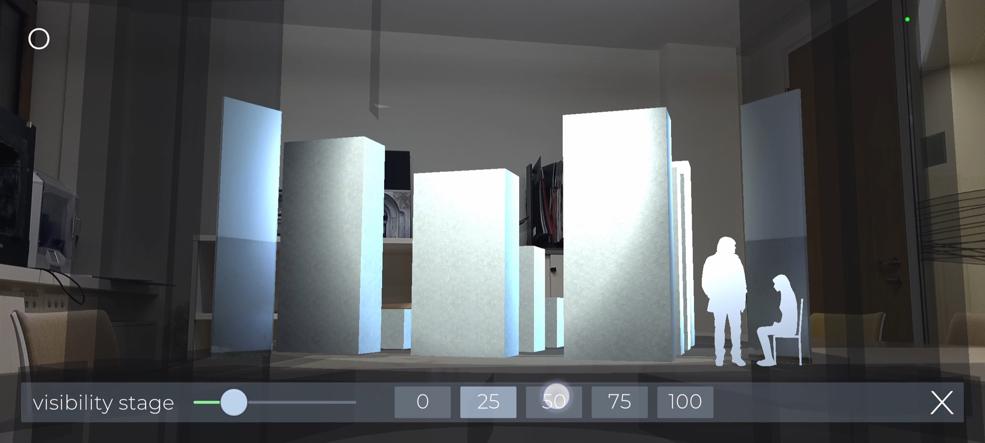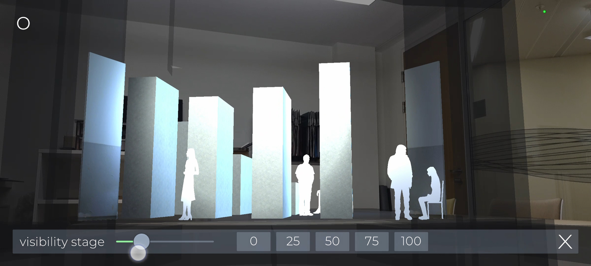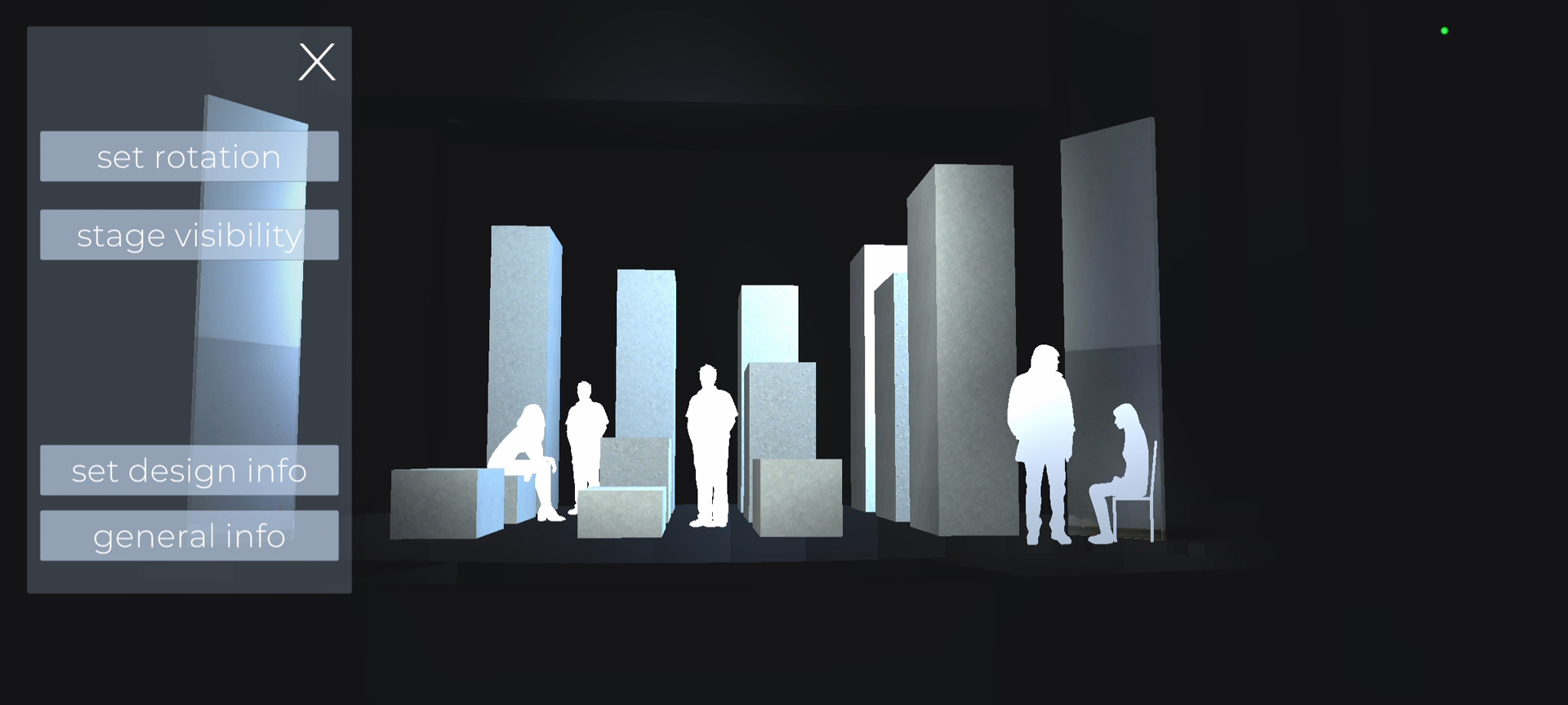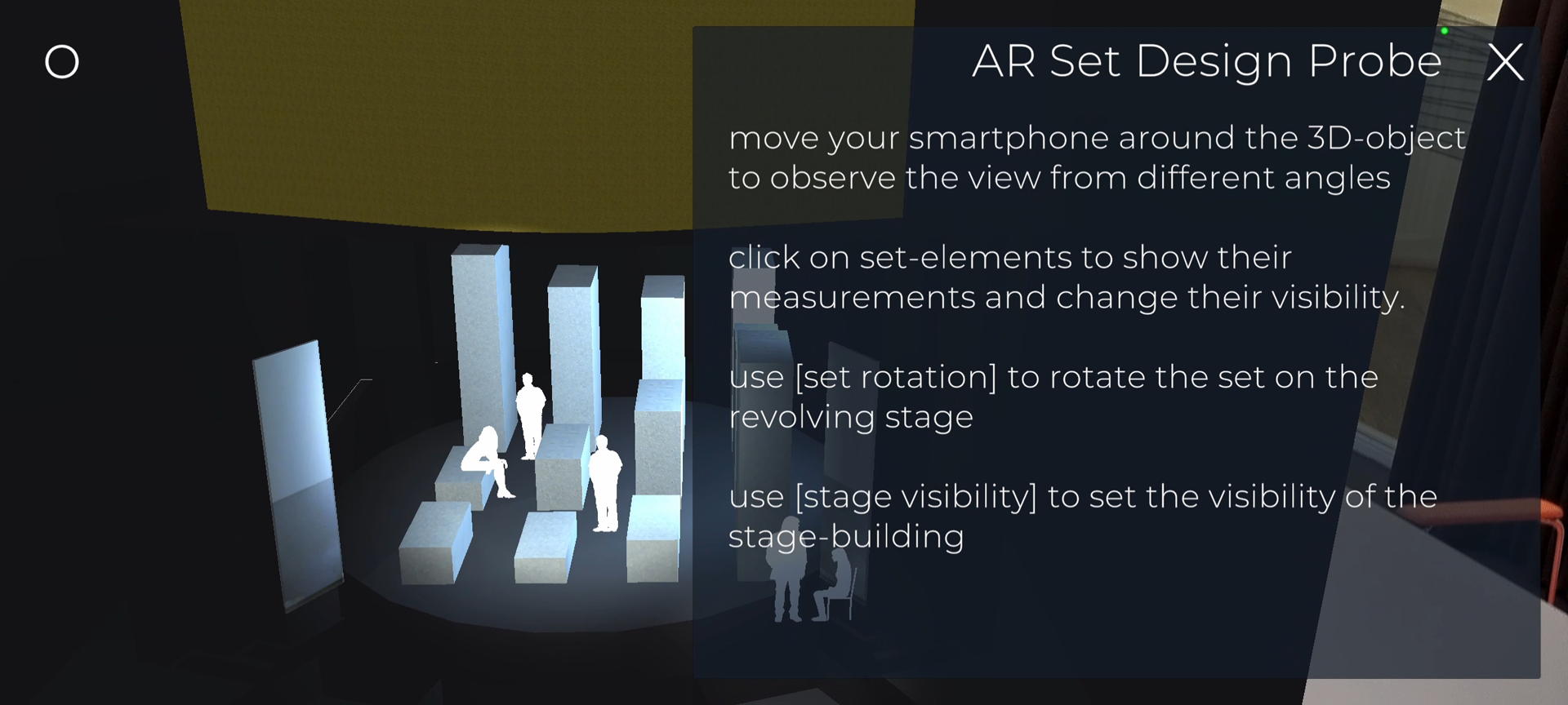 With a screen touch on a detected surface, a digital mockup of a set on the stage is generated on the surface..