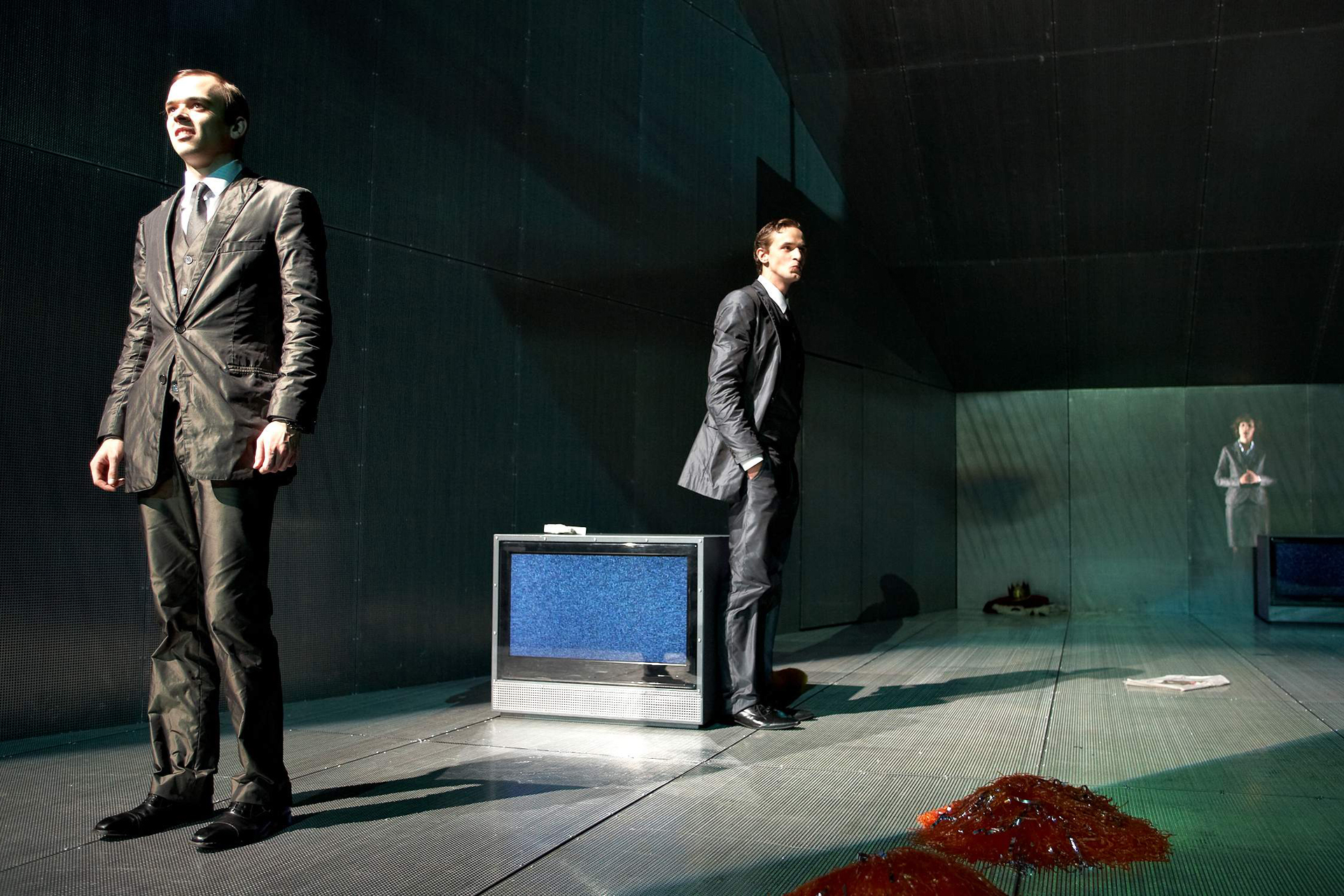 metallisch schimmernde Kostüme verleihen den Figuren eine unantastbare, abweisende Oberfläche